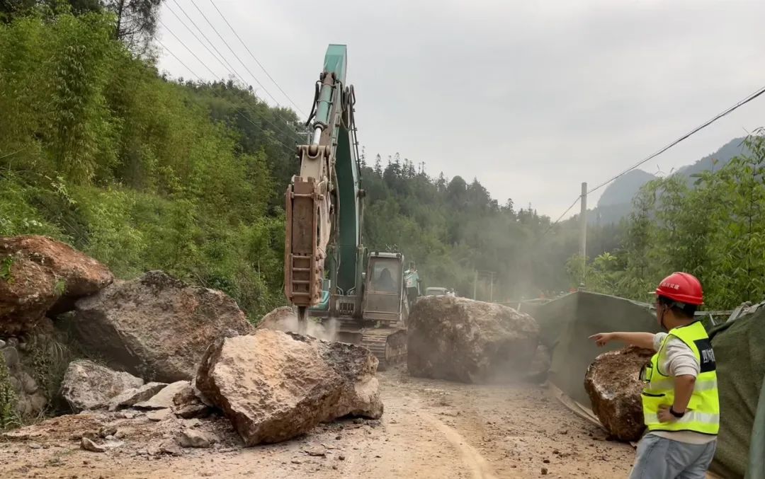交建集團交綠分公司蘆山大川項目部第一時間啟動應(yīng)急預(yù)案,立即組織10名搶險隊員以及1臺裝載機、1臺挖掘機、1臺破碎機、2臺運輸車輛趕赴現(xiàn)場參與搶險救援。期間,搶險隊員及時為該路段設(shè)置警示標識標牌,并指揮裝載機清理掉落在路面上的泥土沙石,搶險工作有序推進。