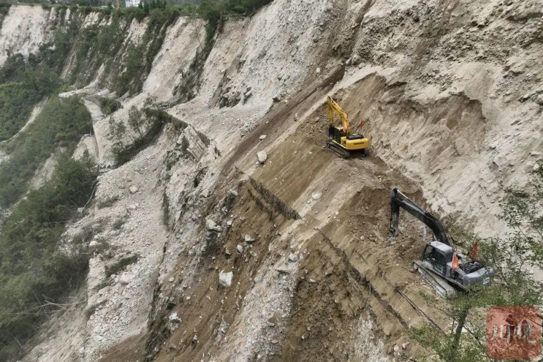 大型機(jī)械走得慢,當(dāng)天晚上11點(diǎn),挖掘機(jī)才運(yùn)抵磨西。在車上呆了一晚后,第二天一大早,就進(jìn)入現(xiàn)場準(zhǔn)備搶險(xiǎn)。