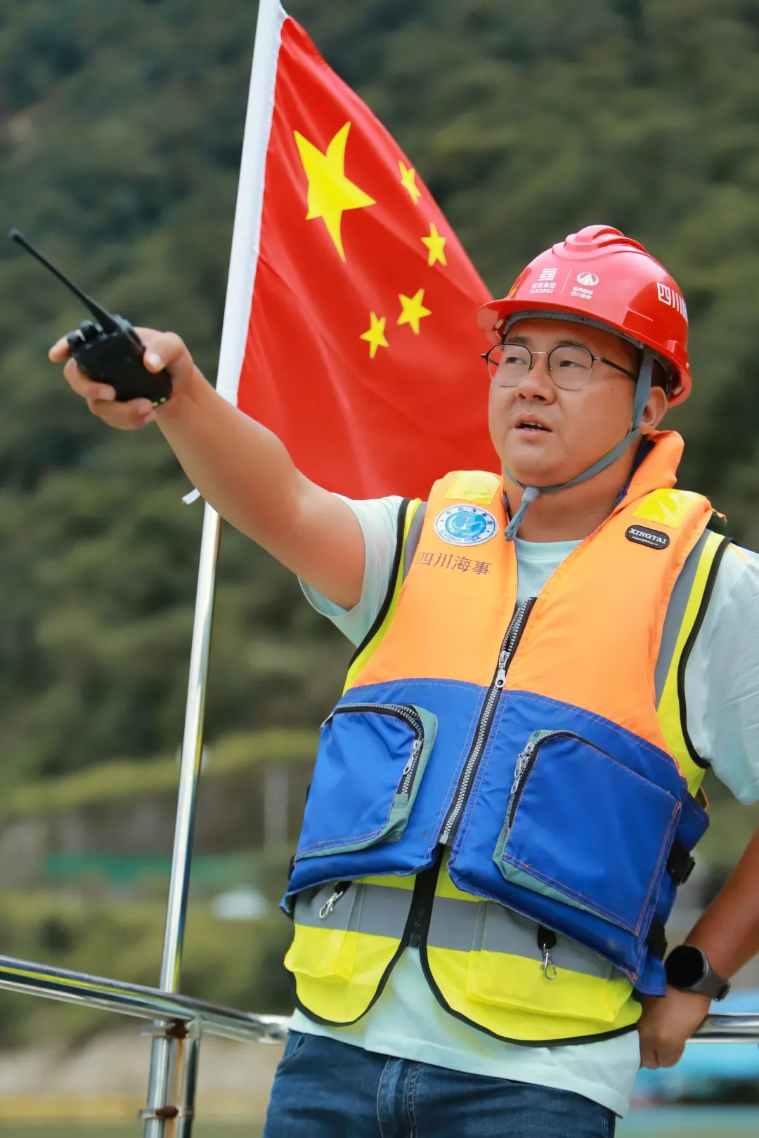 “我覺(jué)得用逆行都不能形容我的兄弟伙,別個(gè)在逃命,我們?cè)谕婷?!”在施工現(xiàn)場(chǎng),秦智指著隨時(shí)有滑坡危險(xiǎn)的山體介紹。正如秦智所言,他們所負(fù)責(zé)的S217省道王崗坪鄉(xiāng)至聯(lián)合村大橋這一段搶通道路,長(zhǎng)度僅有19公里,但卻有大小塌方點(diǎn)十余處,而多數(shù)塌方點(diǎn)上方山體完全垮塌,路面完全被碎石和泥土掩埋,距離他們不足一公里的一個(gè)塌方點(diǎn)更是路基、路面全部消失不見(jiàn)。就在搶通工作正式開(kāi)始后的第二天,他們看到面前的整條道路已經(jīng)完全被垮塌的山體掩埋,而整個(gè)垮塌體完全由松軟的淺表土層組成,挖掘機(jī)上去后,挖取一片,上方就滑落一片,隨挖隨垮,如果強(qiáng)行通過(guò),挖掘機(jī)有被掩埋的風(fēng)險(xiǎn)。面對(duì)難題,現(xiàn)場(chǎng)人員氣氛凝重,在幾經(jīng)實(shí)驗(yàn)無(wú)果后,邀請(qǐng)來(lái)自四川交通設(shè)計(jì)院的專家來(lái)現(xiàn)場(chǎng)指導(dǎo),經(jīng)過(guò)仔細(xì)分析,有著豐富現(xiàn)場(chǎng)施工經(jīng)驗(yàn)的秦智提出采用長(zhǎng)臂挖掘機(jī),超距離作業(yè),增加路上安全觀察點(diǎn)位,新增水上觀察點(diǎn)位,雙重保護(hù),提前預(yù)判,最大限度避免風(fēng)險(xiǎn)發(fā)生。于是,在四川路橋交建集團(tuán)搶險(xiǎn)救災(zāi)的歷史上,第一次出現(xiàn)了水面安全員這一設(shè)置,他們?cè)谡麄€(gè)搶通期間,堅(jiān)守在大渡河上,守護(hù)作業(yè)人員安全,最終搶通隊(duì)伍順利通過(guò)這一攔路虎。