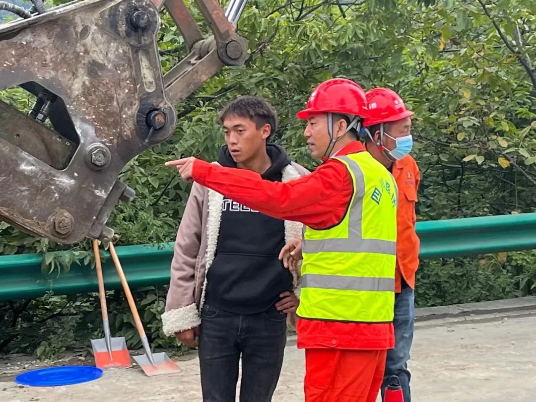 “老鄉(xiāng),你們不要著急,我們是專業(yè)的路橋施工隊(duì),我們來(lái)了,路很快就會(huì)通了!”正在執(zhí)行此路段搶修任務(wù)的蹇林,輕輕拍了拍村民的肩膀,指著正在作業(yè)的挖掘機(jī),聲音溫暖且堅(jiān)定。在奮力搶修保暢的同時(shí),蹇林做的最多的事就是與當(dāng)?shù)厝罕姟坝H密交談”?!拔覀冋诒M力搶修損毀的道路,整個(gè)瀘定有很多個(gè)我們這樣的施工隊(duì),請(qǐng)大家放心,相信很快就能恢復(fù)正常生活咯!”每到達(dá)一個(gè)搶修點(diǎn),他既親切又接地氣的言語(yǔ)都能平撫當(dāng)?shù)匕傩盏那榫w,增強(qiáng)沿線災(zāi)民重建家園的信心。