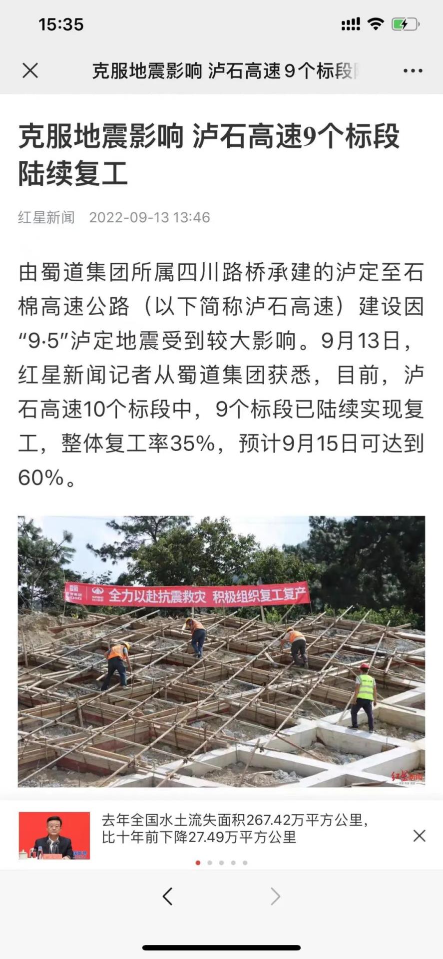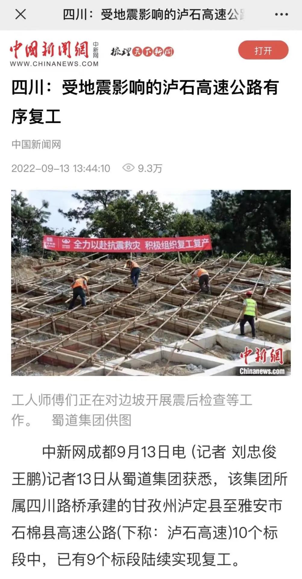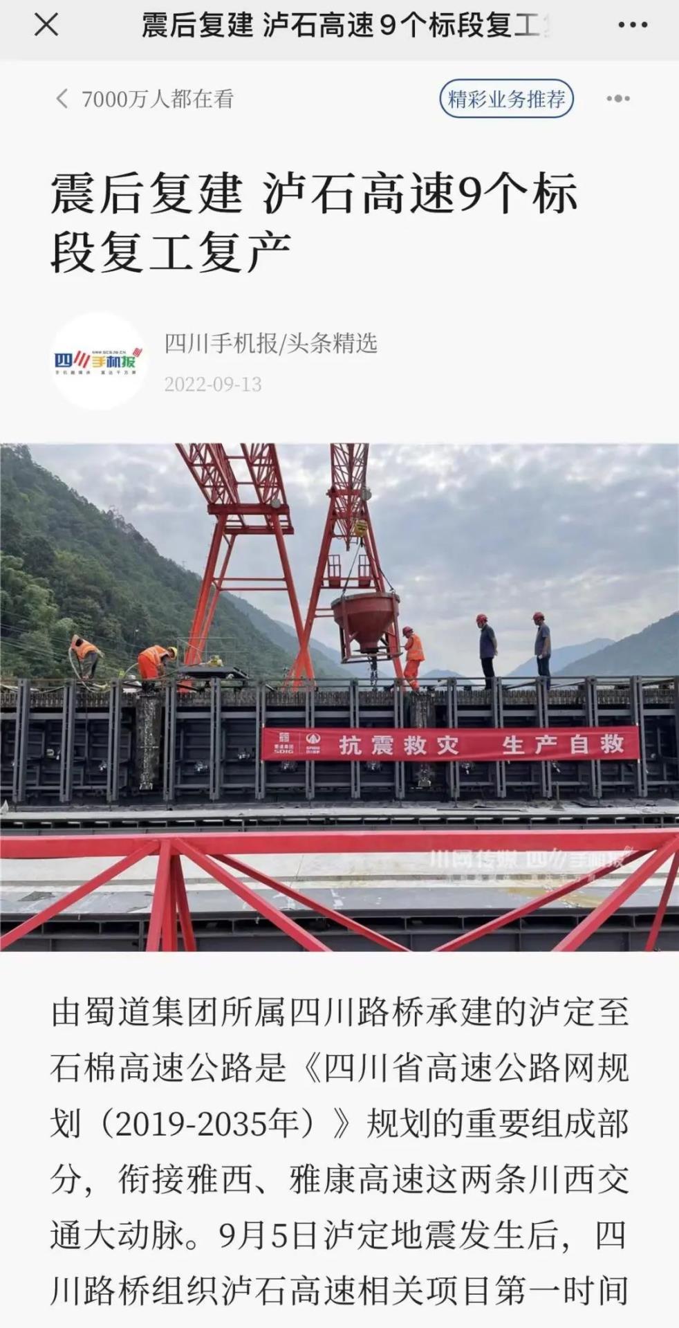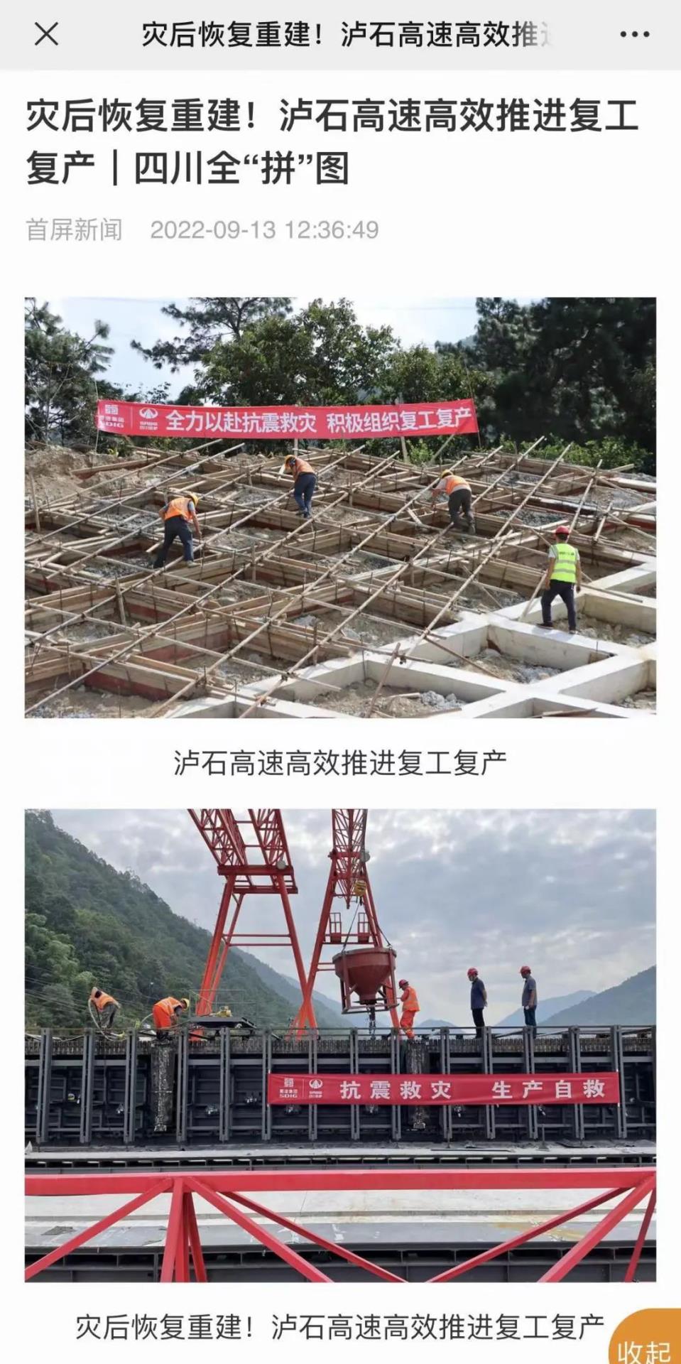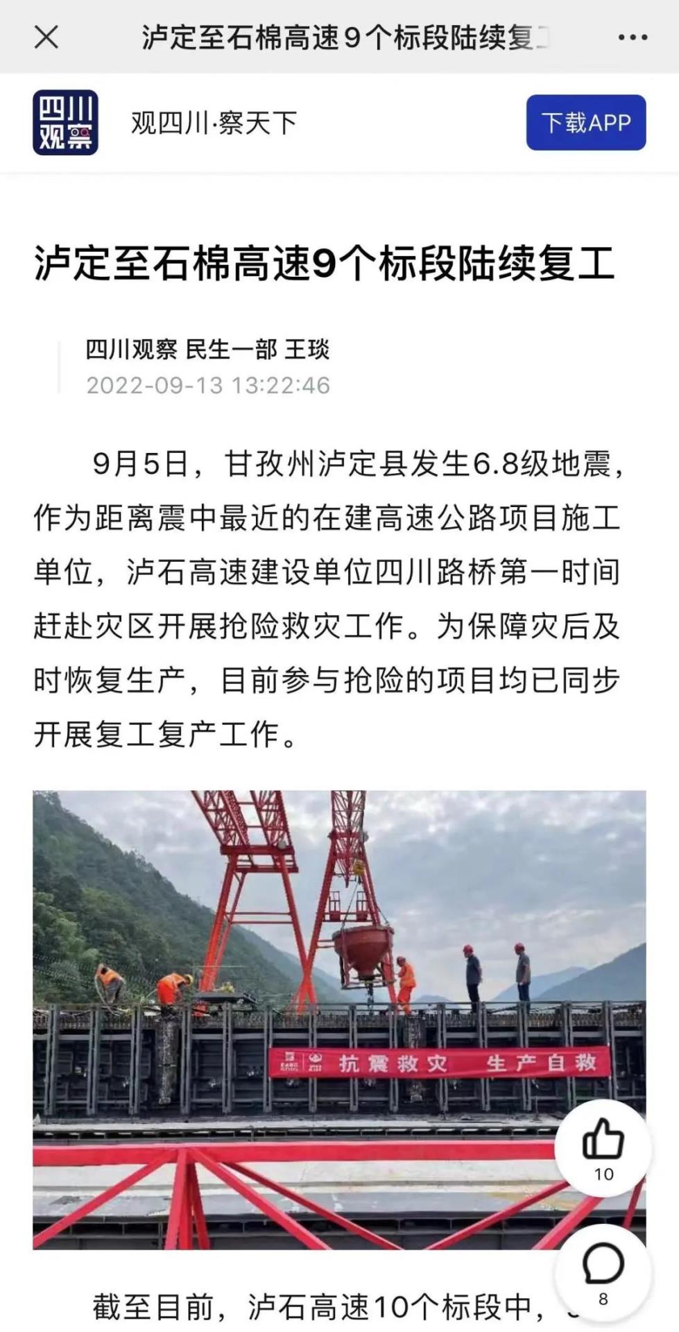 自9月5日瀘定地震發(fā)生以來,四川路橋組織瀘石高速相關(guān)項(xiàng)目第一時(shí)間趕赴災(zāi)區(qū)開展搶險(xiǎn)救災(zāi)工作,取得了階段性勝利。為保障災(zāi)后及時(shí)恢復(fù)生產(chǎn),目前參與搶險(xiǎn)的項(xiàng)目均已同步開展復(fù)工復(fù)產(chǎn)工作。